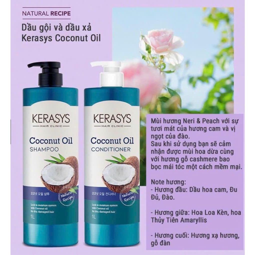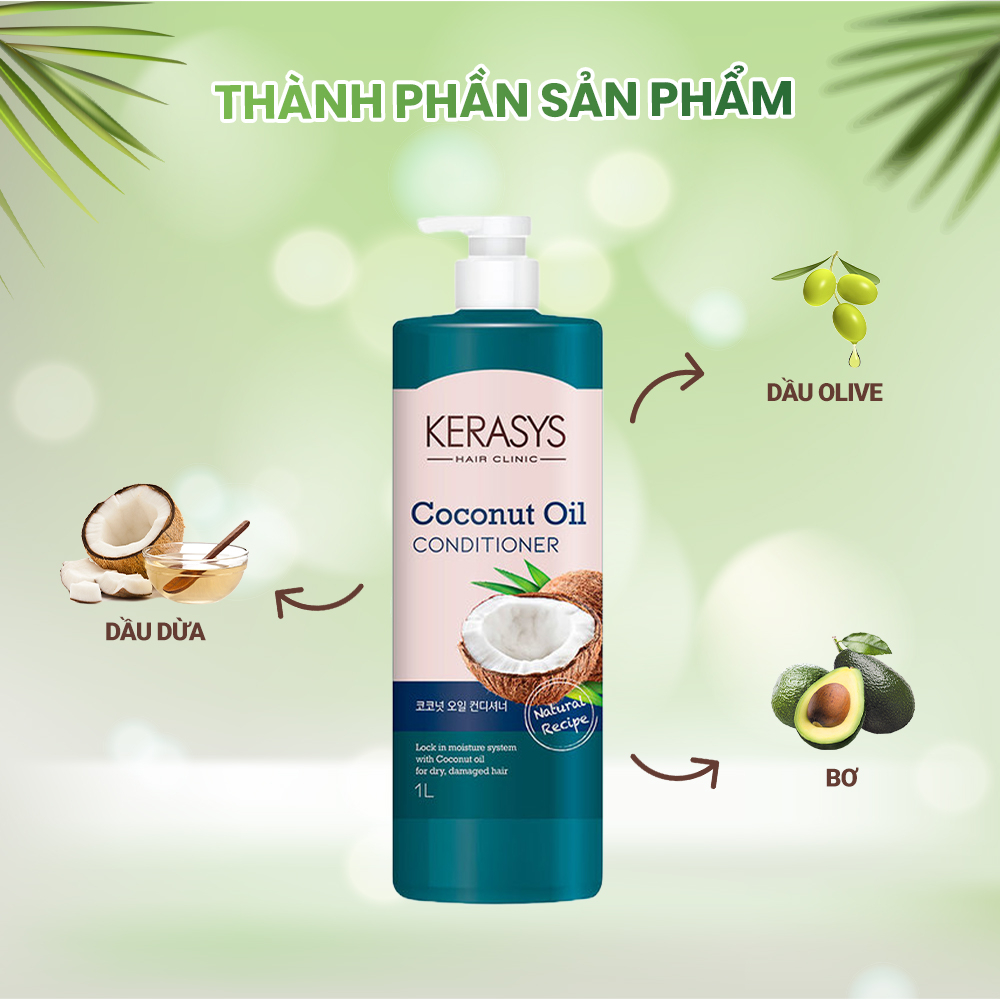 Dầu xả Kerasys Coconut Oil Conditioner 1L chiết xuất dầu dừa Hàn Quốc - Phục hồi tóc hư tổn, giúp tóc mềm mại, bóng khoẻ