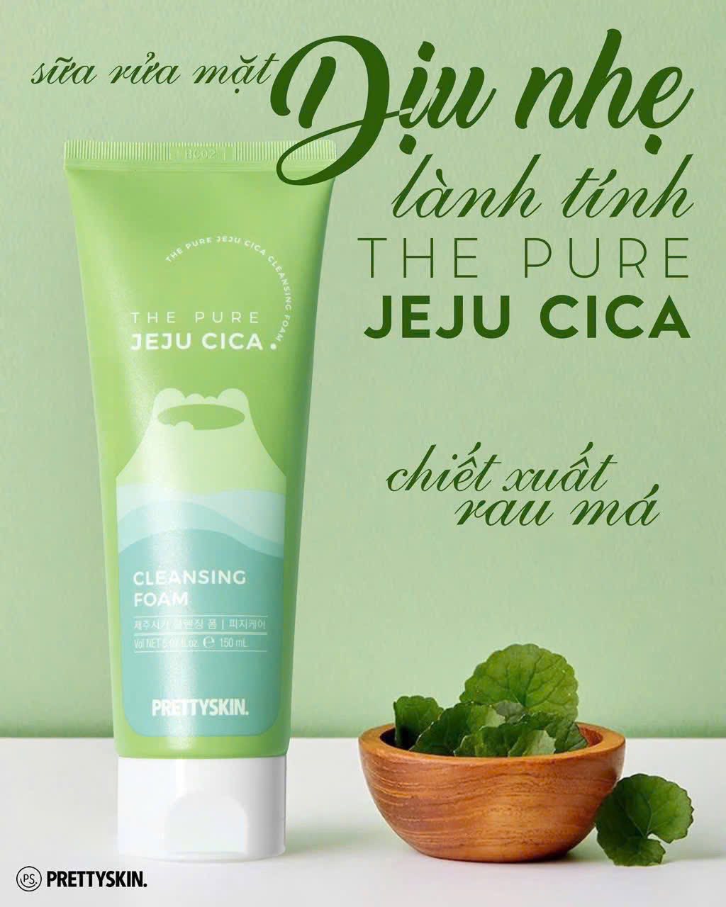 Sữa Rửa Mặt Rau Má The Jeju Cica Prettyskin 150ml – Chiết xuất rau má & tràm trà, làm sạch sâu, dịu da, kiểm soát dầu và ngừa mụn, phù hợp mọi loại da, kể cả da nhạy cảm.